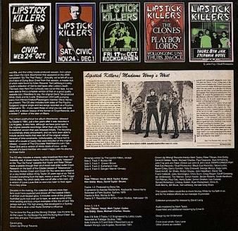 Sydney をに活動した伝説の First Wave Punk Rock グループ The Psycho-Surgeons の Mark Taylor により結成された Australian Punk ~ Garage Punk グループ The Lipstick Killers の激熱音源を 7" 等の既発音源勿論、貴重な未発表デモも加え全 28 曲に渡り網羅した規格外の内容を末恐ろしき公式アンソロジー作 ('21)!!!