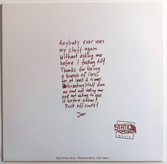 Ex / Vg+ : 後に Total Punk からも LP や 7" をリリースする Berlin 拠点の German Killer D.I.Y. Punk Rock デュオが Static Age より発表、その人を喰ったようなエクストリームなセンスを爆発させ高い評価を得た名盤 1st アルバム ('16) German Orig. w/Insert!!! 今聴いても最高、海外でも既に入手困難となっている 1 枚。